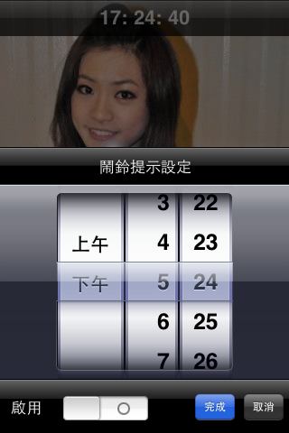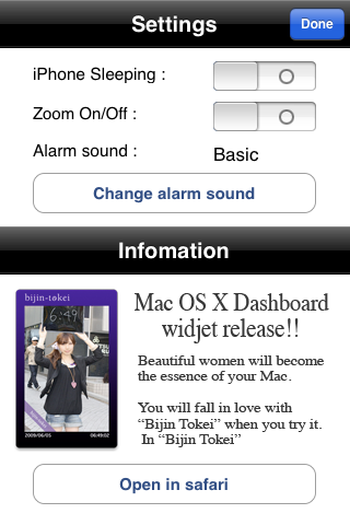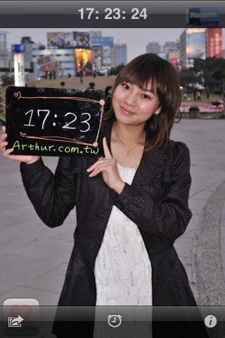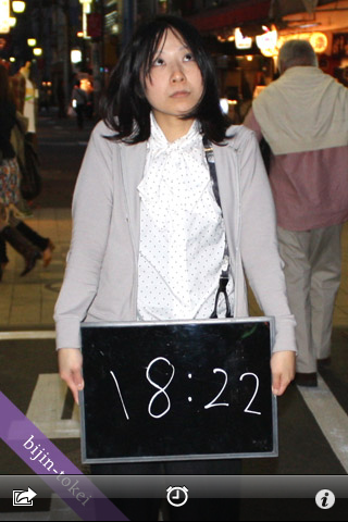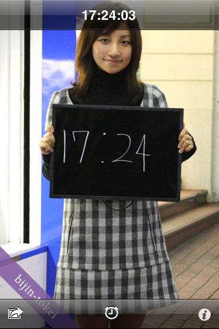 和Bijin-Tokei一樣的模式,每分鐘切換一張正妹,也有鬧鐘報時、直接儲存正妹照片為桌布的功能
